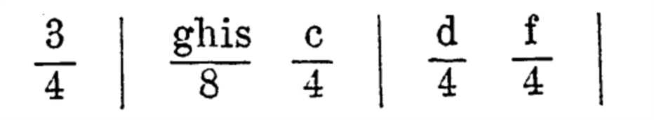 3) Степень разбора высшая есть та, гдѣ разсматриваются всѣ переходы отъ одной тоники къ другой, отъ одного темпа къ другому, отъ одной аксентуаціи къ другой. Для каждаго рода Анализа я изобрѣлъ выраженіе не словесное, но знаками, которое для упражняющихся будетъ переводъ, такъ что, чтобы перевести, нужно будетъ понимать, что переводить. —