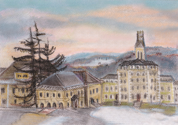 В районе университета просторно и ветрено, на этой горе пронизывает насквозь, и невозможно стоять, но красиво очень, даже сейчас, зимой. Территория университета большая, кругом газоны, современные здания своими размерами и цветом не отличаются от старинных, просто окна шире, и видны современные прочные рамы, здания, не портящие общего ансамбля, но и не подделывающиеся под старину. В общем, хорошо и придраться не к чему, а хочется, очень хочется придраться.