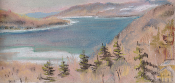13 января. Вчера, съездили на водопад и по дороге полюбовались озером Каюга, одним из пальцевых озер, возле которого и расположена Итака, вернее она расположена в устье речки, впадающей в озеро. Водопад находился в большом котловане природного происхождения. Видимо произошло опускание почвы небольшого, радиуса 1,5 -2 км участка, по краям видны сколы пород, как на озере Рица. (Нет, скажет мне сын, во второй мой прилет в Америку, ну-ка Ваня, объясни бабушке, откуда здесь эта расселина, и внук важно скажет «это ледник прокопал»).