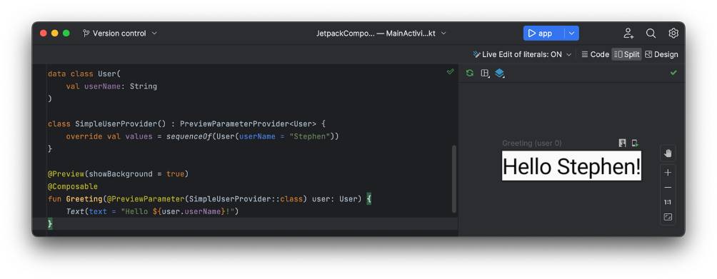 Так для создания provider-класса необходимо наследоваться от PreviewParameterProvider<T> и переопределить значение по умолчанию. Preview Parameter принимает provider класс и параметр – максимальное количество элементов, которые он должен отобразить.
