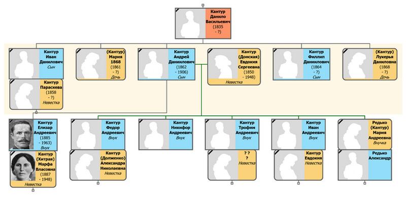 В 1885 году у Кантур Андрея Даниловича родился сын – Кантур Елизар (до 1917 носил имя Назар) Андреевич (1885–1865).