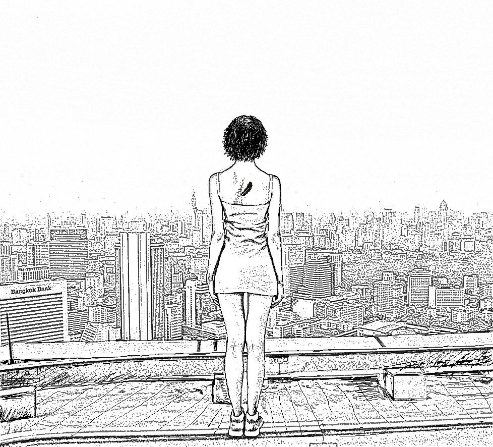 Она стояла на углу плоской крыши кирпичной высотки – маленькая, тоненькая и беззащитная, словно хрупкая статуэтка, застывшая на полке дорого́й антикварной коллекции.