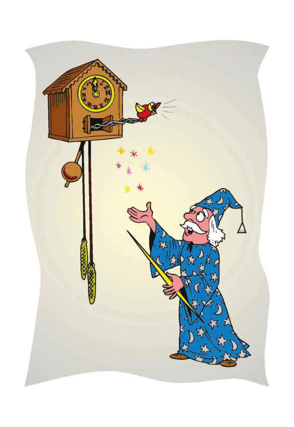 В полночь, когда стрелки всех городских часов медленно приближались к 12, маленький гном появлялся на тёмных и пустых улицах города. Он проверял работу всех городских часов. С помощью волшебной палочки он устанавливал их стрелки на времени, которое только ему удавалось услышать из глубины таинственной Вечности.