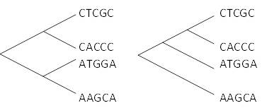 5.4.3. Рассмотрим следующие последовательности из четырех таксонов.
