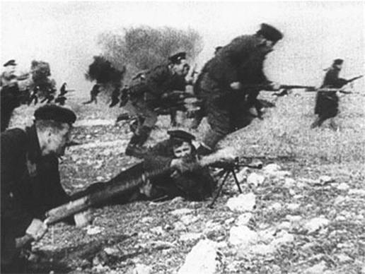 Эти кадры кинохроники отражают бои под Новороссийском или Севастополем. Однако, краснодарцы должны знать, что в боях за город героизм и мужество проявили бойцы 76й морской стрелковой бригады и 144го батальона морской пехоты. Прикрывая отход 30й Иркутской дивизии 11 августа 1942 года морская пехота перешла в атаку и ценой жизни 2500 бойцов обеспечила отвод соединений 56й армии на левый берег