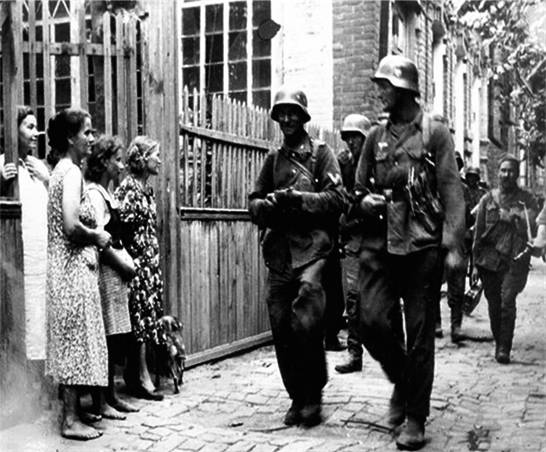 Встреча немецких войск жителями города (не позиционированный снимок)