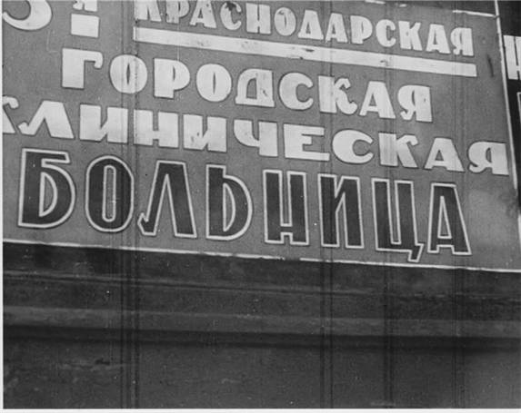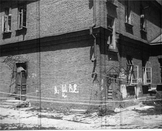 Из этих дверей 3й городской больницы 22 августа 1942 года на следующий же день после расправы над еврейским населением больных людей выводили на смерть в душегубку (снимок 1943 г.) (ЦГАКФД № ТР8700)