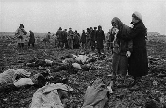 После освобождения города от фашистов в местах массовых захоронений советских граждан проходили опознание жертв и перезахоронение останков на Всесвятском кладбище.