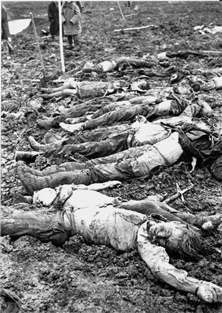В Центральном архиве кино, фотодокументов хранится много документов, запечатлевших расследование злодеяний врага. Краснодарцы на месте вскрытых могил советских граждан, убитых нацистами, на опознании жертв (кадры из фотохроники следственного дела).