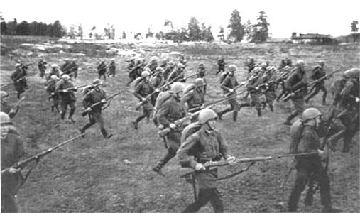 Впереди шли пулеметчики. Первый номер нес на плече ствол «максима», второй номер – его станок, как ярмо на шее. За ними несли ручные пулеметы системы Дегтярева. Замыкала колонну густая щетина штыков трехлинеек образца 1890–1930 гг. В такт дружным шагам мотались черенки малых саперных лопаток – последних защитниц солдата в бою. В сумках на левом боку топорщились гофрированные трубки и резиновые маски сомнительно нужных противогазов. Скатки шинелей, подсумки, саперные лопатки и учебные ручные гранаты дополняли нехитрую экипировку курсантовпехотинцев, марширующих на полевые занятия…