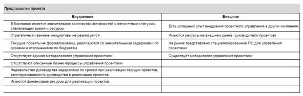 Раздел «Предпосылки проекта» из Устава проекта внедрения проектного управления в компании-лидере рынка в России в своей отрасли (ИТ сфера)