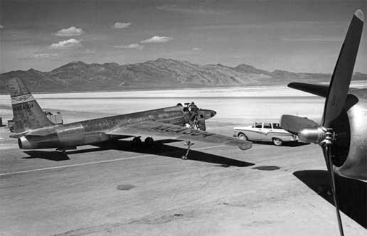Разведывательный самолет U-2. На снимке видны «костыли», которые при взлете поддерживали крылья самолета