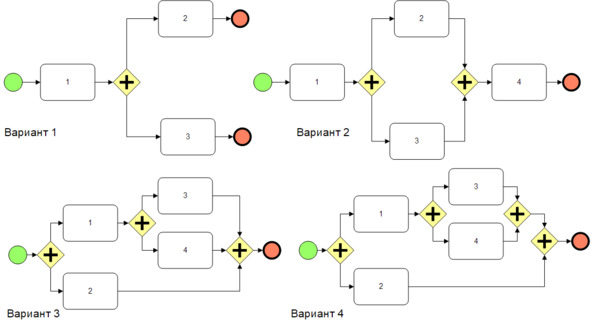 Вариант 2 – показано параллельное выполнение двух потоков, которые потом сходятся на шлюзе «И», а процесс продолжается.