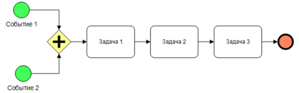 Более сложные инструменты нотации BPMN, используемые для моделирования запуска процесса несколькими событиями будут рассмотрены ниже.
