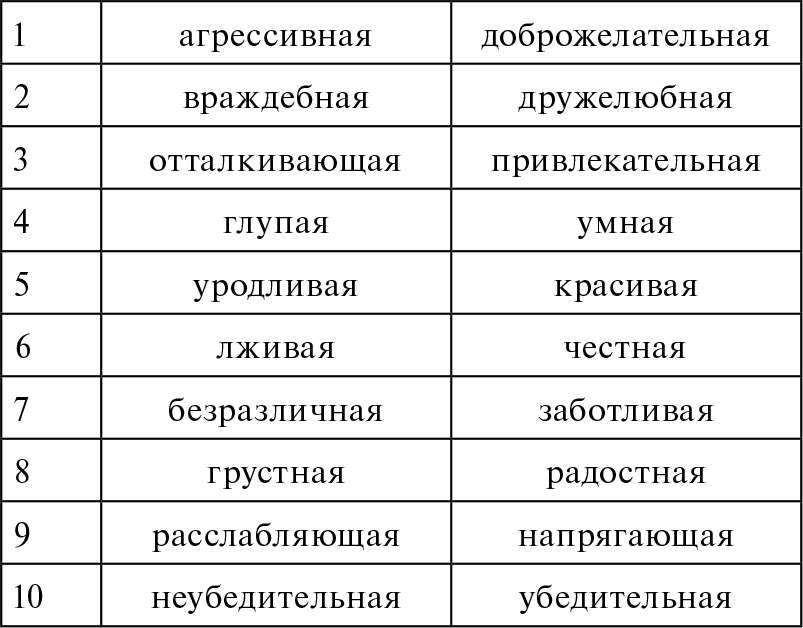 Таблица 1. Шкалы семантического дифференциала для проведения исследования