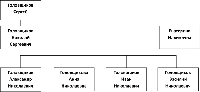 Мария Николаевна – 23 июня 1916 г. Ее восприемники при крещении: священник Василий Васильевич Головщиков (дядя) и старшая сестра Елена Николаевна Головщикова. Мария Николаевна вышла замуж за Березина Павла Ивановича (1918–1969) и родила двоих сыновей: