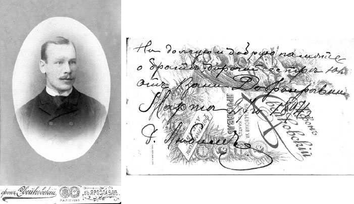 «Милым родным Алеше и Ек. Вас. Добронравиным от любящего их брата. Петр Добронравин 18-6/v 99 г.»