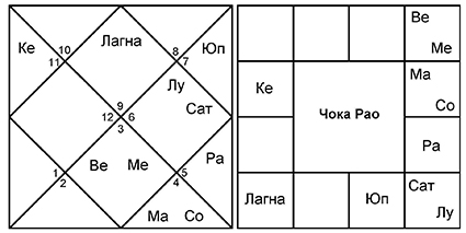 В астрологии можно очень легко проследить Карма-пхалу с помощью системы Махадаш. Для примера рассмотрим гороскоп 1.