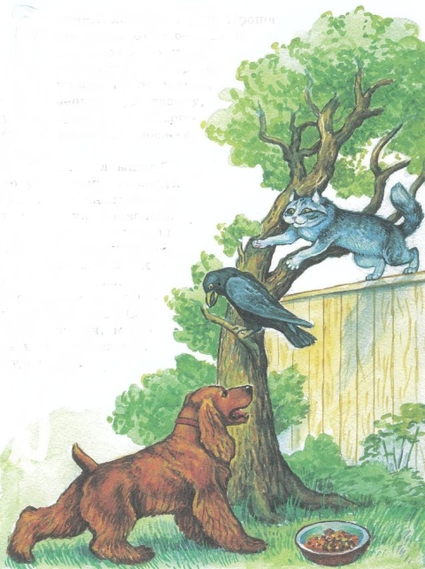 В миске что-то стукнуло. Проша открыл глаза и увидел ворону, которая держала в клюве один из сухариков. Махнул лапой, но схватить воришку не сумел. Она, громко хлопая крыльями, взлетела на высокое дерево, к которому Проша подбежал и яростно стал лаять. К сожалению, по деревьям он лазить не умел.