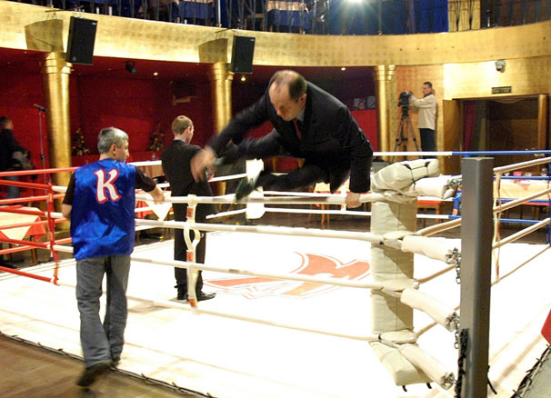 2004年。モスクワ。 プロモ—タ—Sergey Zayashnikovは、リングのロ—プをジャンプします