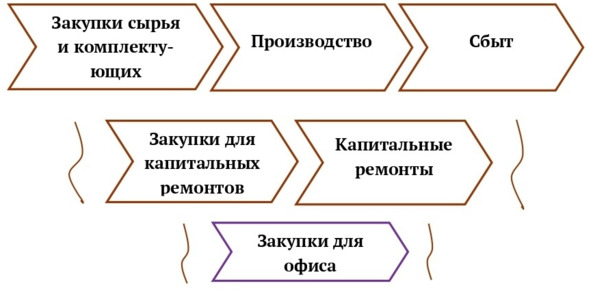 Закупки могут осуществляться в интересах обеспечивающих процессов, например, закупки для офиса, как показано на рис. 3.