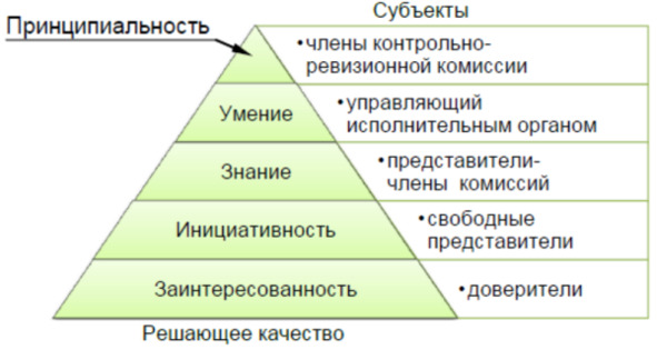 Инициатива участника – главный капитал сообщества. Наличие или отсутствие этого и других важных качеств, составляющих пирамиду управления, «расселит» актив по «этажам» управления сообщества. Активист сам пройдёт путь последовательных инициаций, исходя из уровня его претензий на участие в управлении и доверия к нему людей. Специализация в структуре высшего органа и обратная связь усилят взаимодействие и осознание ответственности: