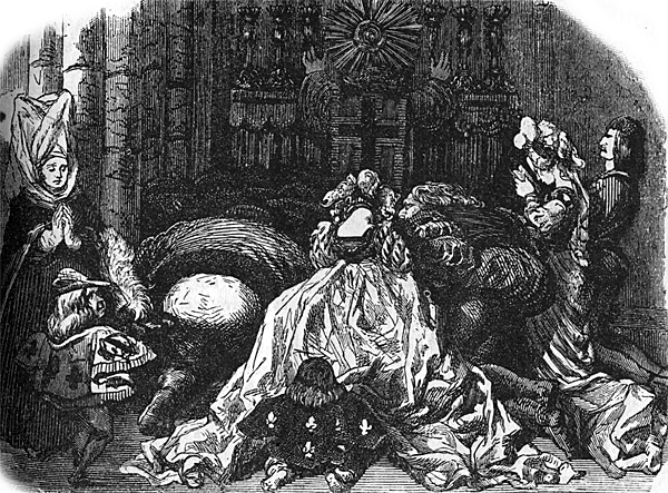 Пантагрюэль охотно согласился, и нашел зрелище забавным и новым. Самое интересное было во время крестного хода, когда вокруг дамы оказалось 600 014 собак, причинявших ей тысячи мучений. И где бы она ни проходила, все новые и новые собаки увеличивали свору и сейчас же пускали лужи на том месте, которого касалось ее платье.