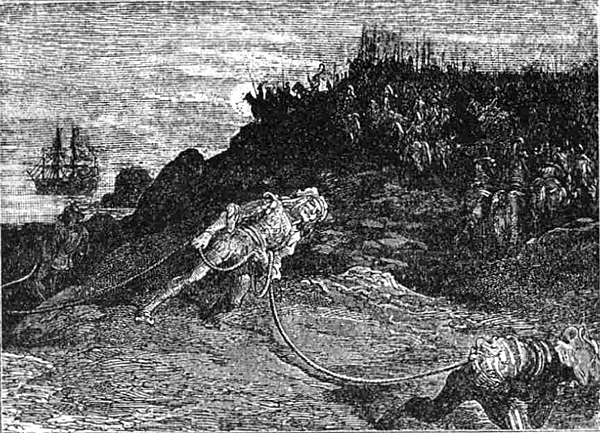– Друзья, ждите здесь и смело предстаньте перед неприятелем, окажите ему повиновение и сделайте вид, что сдаетесь. Остерегайтесь только попасть в круг этих канатов и постоянно держитесь вне их.