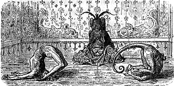 «И вот удивительное дело! – продолжал Ксеноман. – Он работал, ничего не делая; ничего не делая, работал; его работа состояла в бездельничанье, а его бездельничанье – в работе… Чтобы заснуть, он открывал глаза; чтобы открыть глаза, он засыпал (он – как заяц – боялся козней со стороны его вековечных врагов – Колбас). Смеялся, кусаясь; а укусы его состояли в одном смехе. Постничая, ничего не ел; не ел ничего – и все-таки ел постное… Купался на высоких колокольнях, сушился в прудах и реках… Охотился в глубине моря, а рыбу удил в воздухе. Боялся только своей тени да крика жирных козуль… Гвозди вбивал кулаком. Своим толстым стилетом писал на гладком пергаменте предсказания и альманахи».