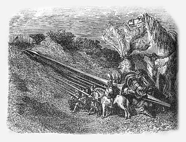 Итак, благородные бойцы отправляются в свое предприятие, твердо решив взвешивать, какую встречу следует принять и какой остерегаться, когда наступит день великого и страшного боя. А монах придает бодрости, говоря:
