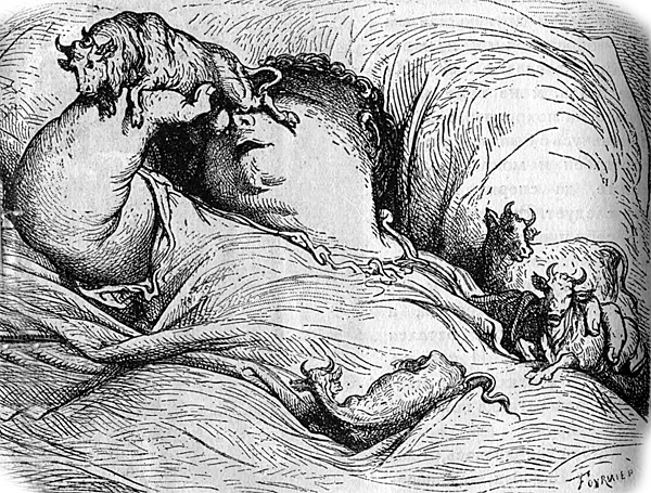 Говоря это, Гаргантюа ревел как корова. И вдруг начинал смеяться как теленок, вспомнив про Пантагрюэля: