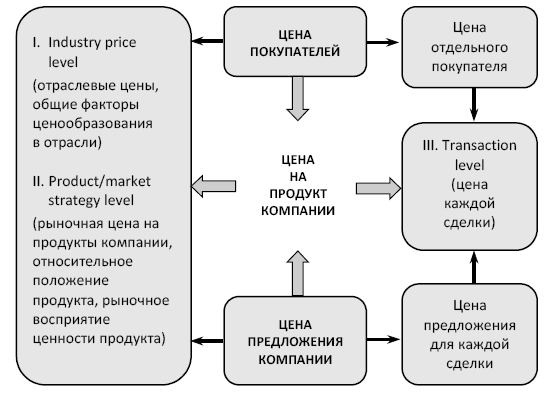 Такой фокус анализа меняет привычный взгляд на принципиальную схему формирования цены. Так, эксперты компании McKinsey выделяют три уровня изучения ценообразования [Marn, Rosiello, 1992].