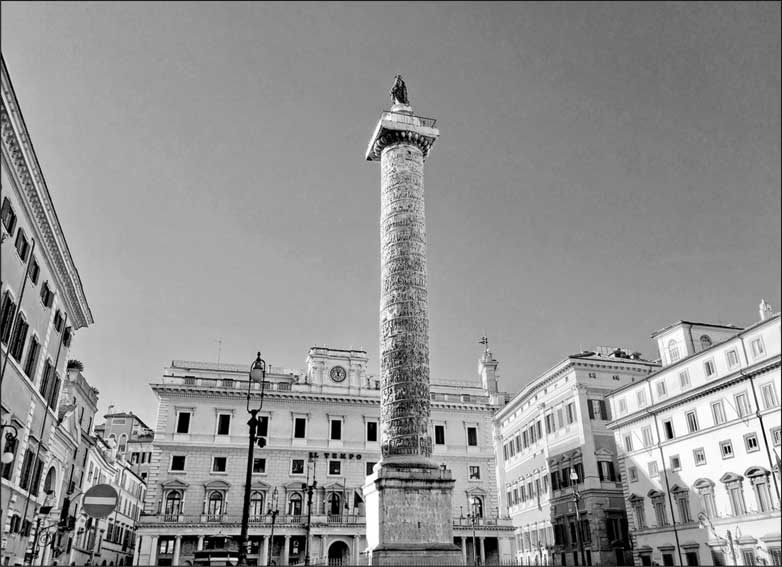 Шагаем дальше и видим площадь Колонны (piazza Colonna), примыкающую к улице справа. Ее трудно перепутать с другими – на ней стоит колонна Марка Аврелия (Colonna di Marco Aurelio). Марк Аврелий в душе был философом (даже написал трактат из 12 книг!), но если ты император, пиши-не пиши, а все запомнят только твои военные достижения. Доказательством тому и служит колонна, на которой запечатлены эти подвиги. С другой стороны, конечно, на карарском мраморе легче выгравировать походы против варваров, чем постулаты позднего стоицизма. Колонну воздвигли в конце II века, уже после смерти императора, и позолоченная бронзовая статуя Марка Аврелия возвышалась на ней вплоть до средних веков. Потом ее… потом она была… В общем, перестала возвышаться.