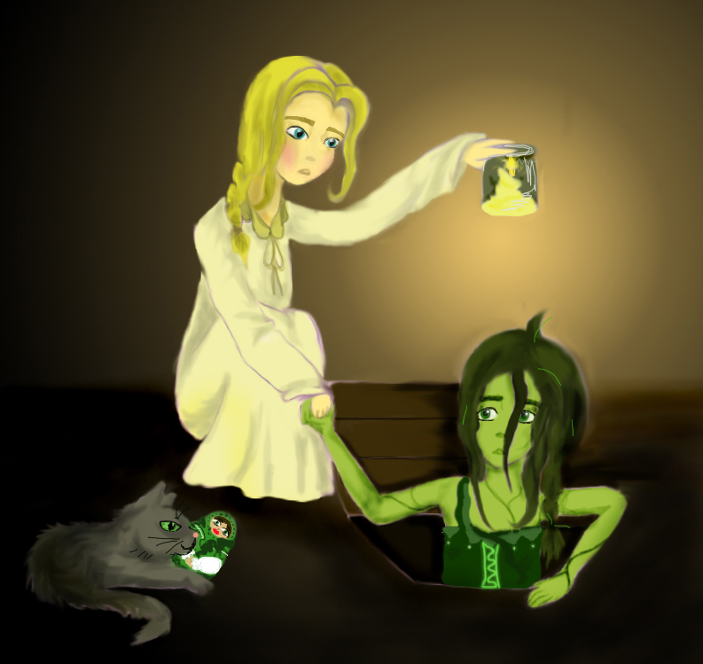 – Брось трусить то! Вытяни меня отсюда, ноги мёрзнут, – раздалось из подпола. – Я вовсе не страшная, подумаешь, зелёная! И к тому же, твоя гостья.