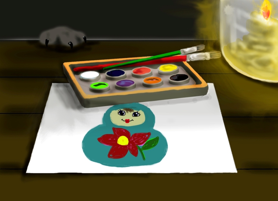 Выключила Полинка свет. Поставила перед собой на столе зажженную свечку в баночке, представила себя настоящей феей и принялась за оживление игрушки. Сначала набросок на бумаге сделала, раскрасила его карандашами. Пусть будет матрёшка в белом платьице с голубым цветастым фартучком и в тон ему головном платочке! Затем краски и кисть приготовила. Взмахнула, словно волшебной палочкой кистью с краской, и начала мазочки легонько наносить на деревянное тельце. Не заметила девочка, как работу окончила, как сон чудной её обуял, как ночь прошла.