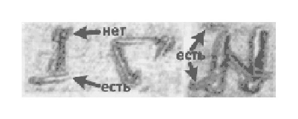 Этот ограничитель обнаружился и у буквы Ш, хотя именно в ее графике он не просматривается. Однако он показан в графике буквы Щ, которая образована непосредственно из графики буквы Ш, что позволяет сделать вывод о его наличии и в ней (Рис. 10)