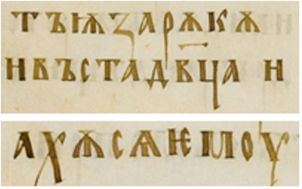 Рис.14. Произвольные вырезки из «Остромирова Евангелия», XI век