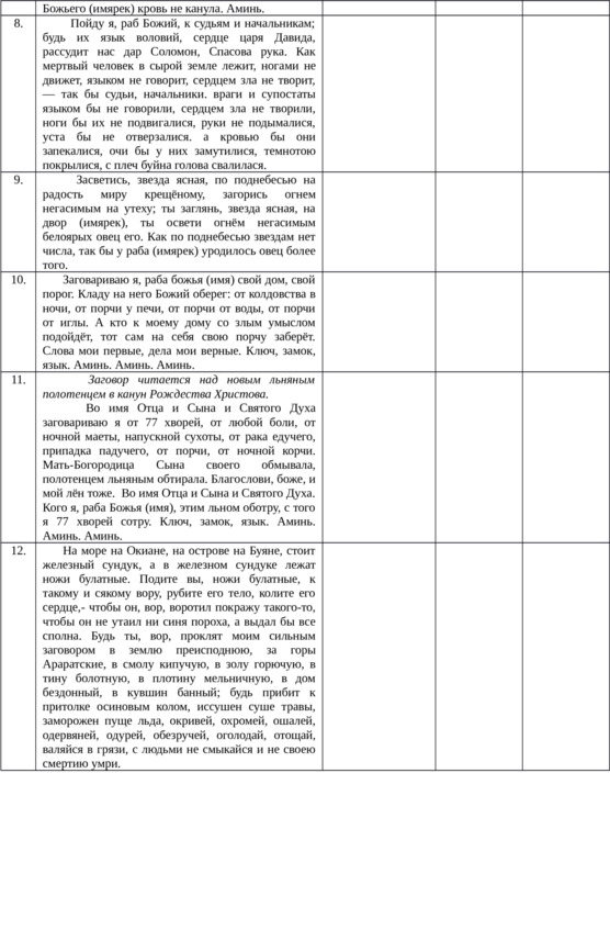 7.Создайте памятку для составителя заговоров «Каким должен быть текст заговора в соответствии с „заговорной формулой“»?
