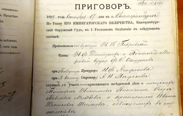Суд над всеми состоялся в 9 часов утра 17 сентября 1899 года и слушался на закрытом заседании, как особо нравственном. Всех отдали в исправительные арестантские отделения на три года и по распоряжению духовного начальства подвергли церковному покаянию. В этот же день Иван Иванович Редикорцев вследствие невиданного доселе «скандале» скоропостижно скончался от «апоплексического удара». Имущество же Ивана Ивановича Редикорцева, в основном, большая коллекция минералов, перешло к его племяннику.