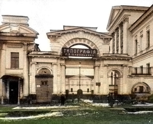 Вид типографии Шаравьевой, расположенной напротив «Дома Ипатьева», в усадьбе Расторгуева-Харитонова. 1900-е годы