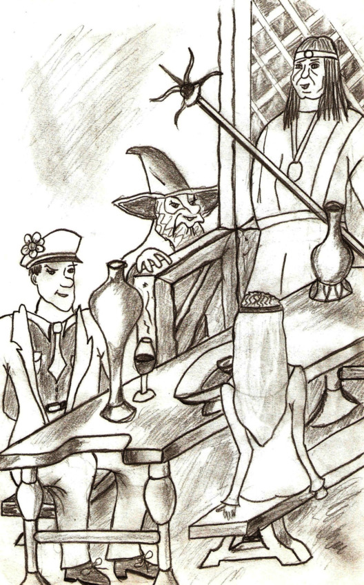 Я веселился, одновременно соображая, как исправить столь плачевное положение. Когда мне это надоело, то вышел на улицу, прошёл несколько домов и оказался в баре, чтобы подумать, как поступить с этим несчастным потолком. Там взял себе штоф с вином и медленно его попивал. Рядом со мной сидел худосочный мужик и порывался вступить с барменом в разговор на тему, чтобы тот дал ему пива в долг, но бармен долго не соглашался. И всё же дядьке удалось его уговорить, и тот, взяв в руки мелок, записал на доске фамилию посетителя и сумму долга.
