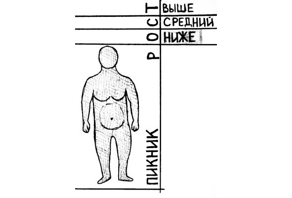 Пикники имеют округлые формы, полноту или сильную склонность к полноте. Другие отличительные черты: небольшой рост, короткие конечности, квадратная кисть с маленькими пальцами, маленькая толстая шея и округлая форма лица. Их ноги абсолютно гладкие и бесформенные, икроножные мышцы не выделяются; стопы маленького размера. Мышцы у пикников – даже у спортсменов – не приобретают особой рельефности, оставаясь довольно бесформенными. Тазовая кость широкая (рис 3).
