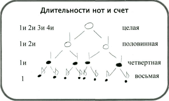 Длительность звука – это время его звучания. Существуют основные длительности:
