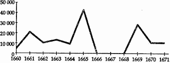 Эти деньги наверняка шли на ведение войн. И даты это подтверждают: в 1665 году, например, когда зарегистрирован пик поступлений, Голландия вступила в войну с Англией.