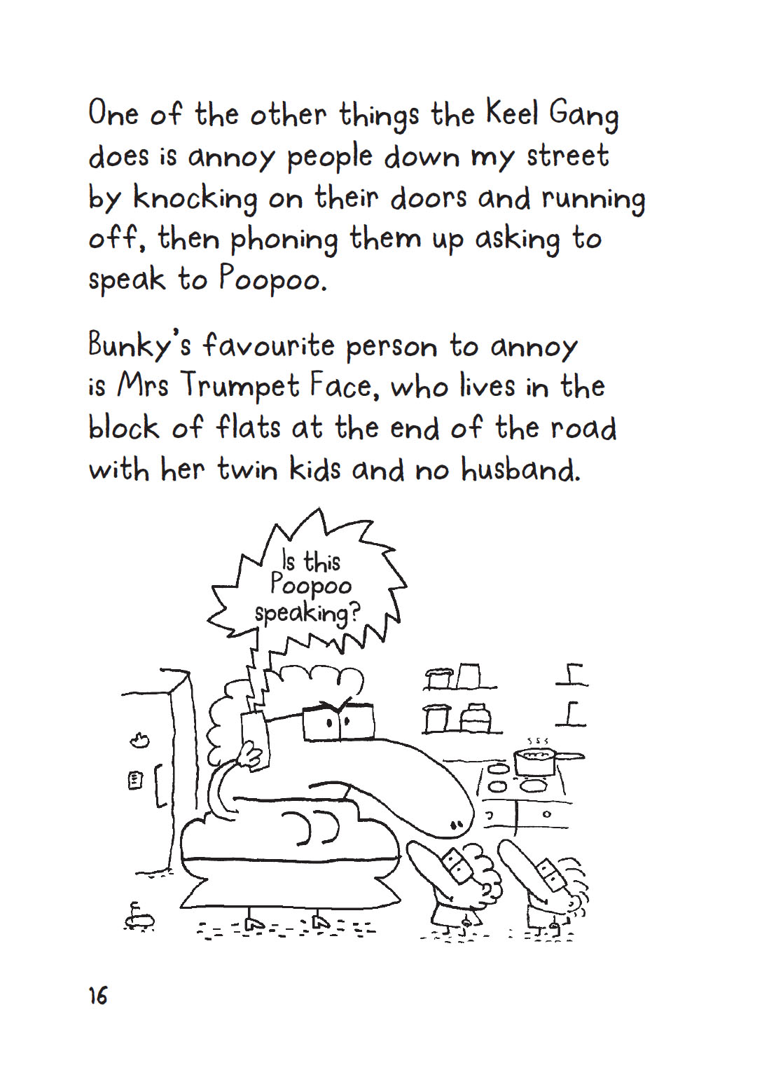 One of the other things the Keel Gang does is annoy people down my street by knocking on their doors and running off, then phoning them up asking to speak to Poopoo.
