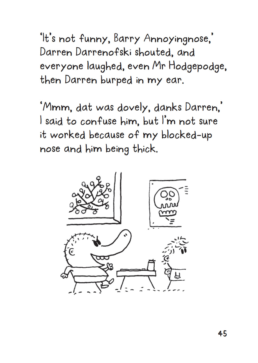 'It's not funny, Barry Annoyingnose,' Darren Darrenofski shouted, and everyone laughed, even Mr Hodgepodge, then Darren burped in my ear.