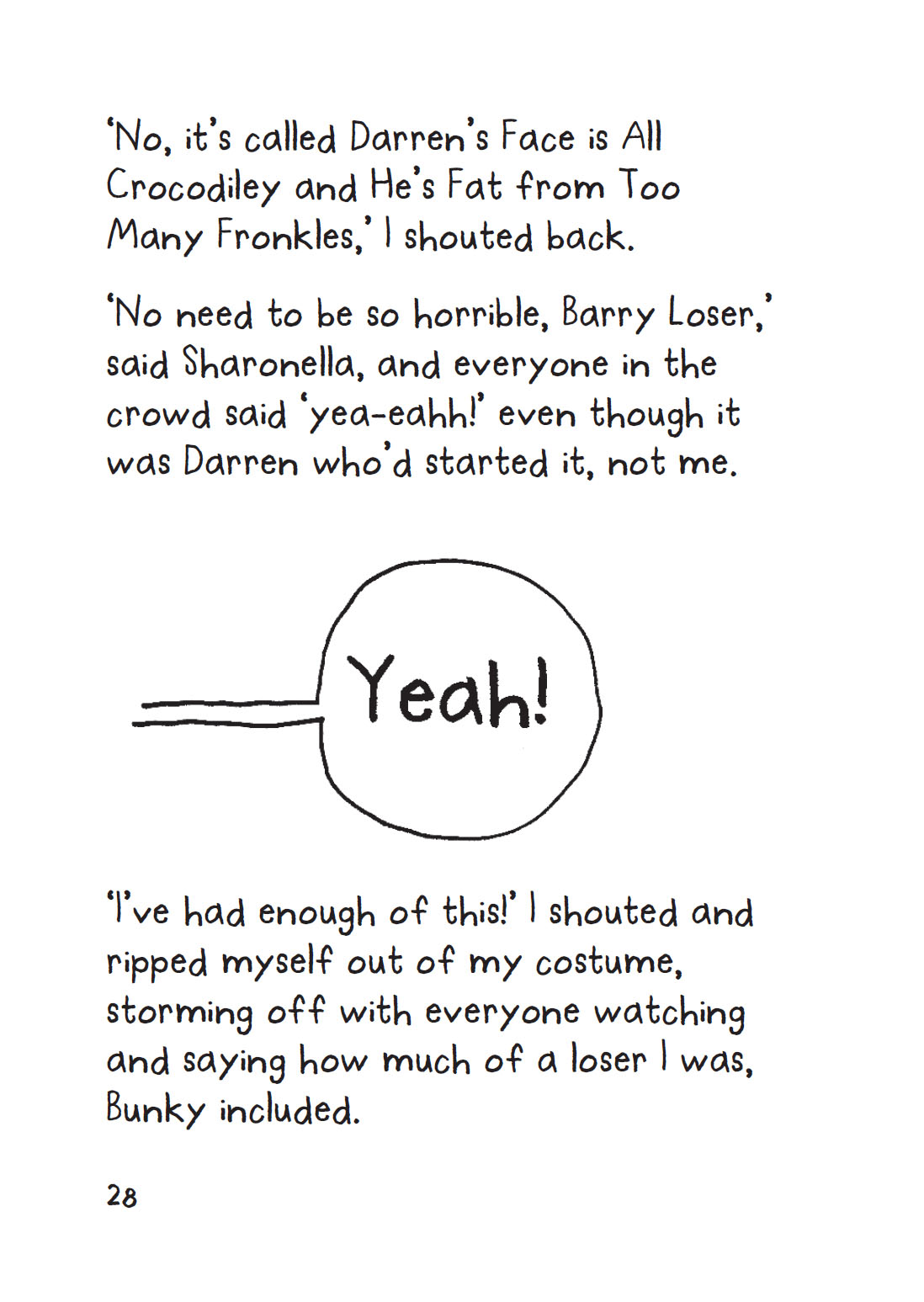 'No need to be so horrible, Barry Loser,' said Sharonella, and everyone in the crowd said 'yea-eahh!' even though it was Darren who'd started it, not me.