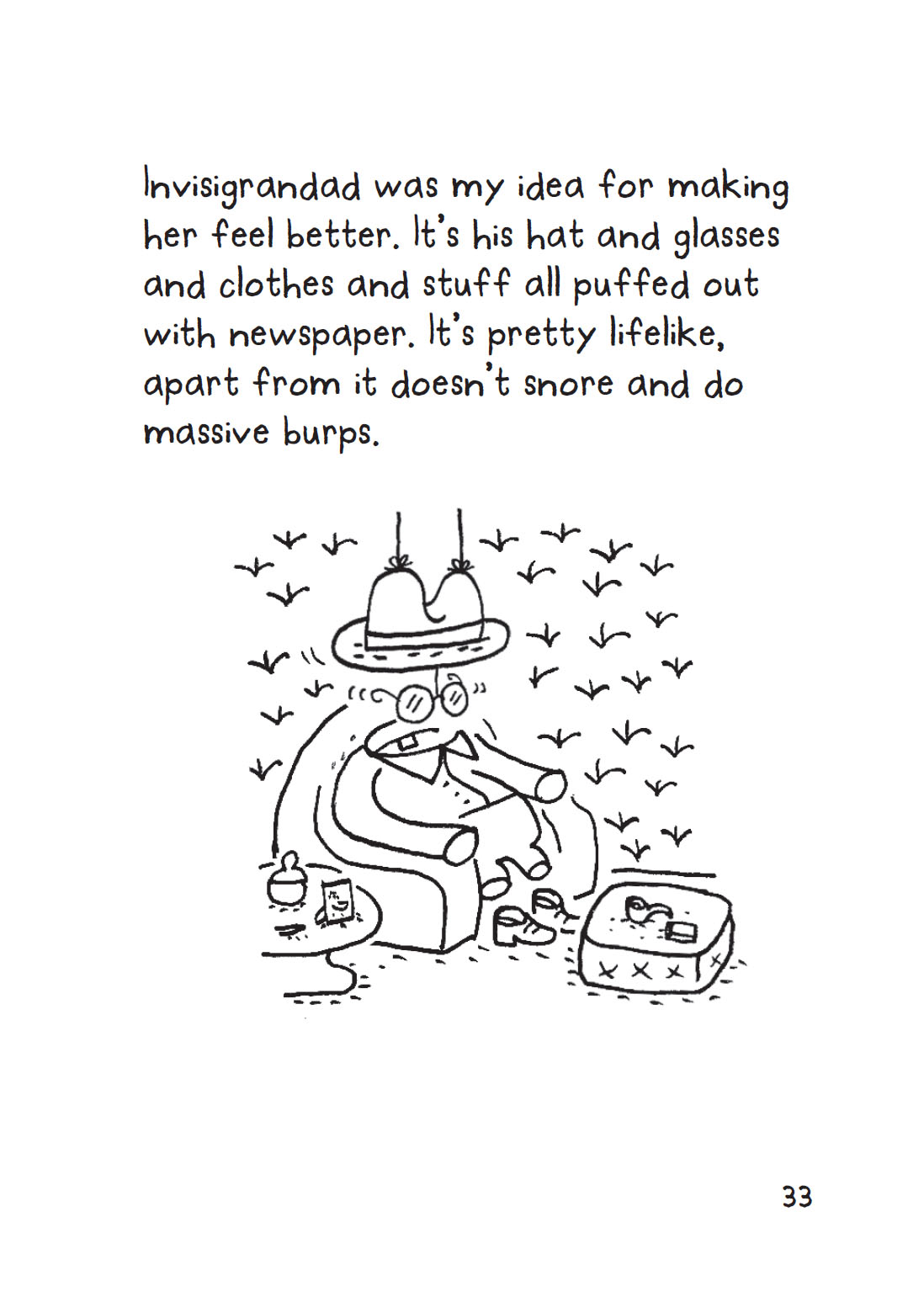 Invisigrandad was my idea for making her feel better. It's his hat and glasses and clothes and stuff all puffed out with newspaper. It's pretty lifelike, apart from it doesn't snore and do massive burps.