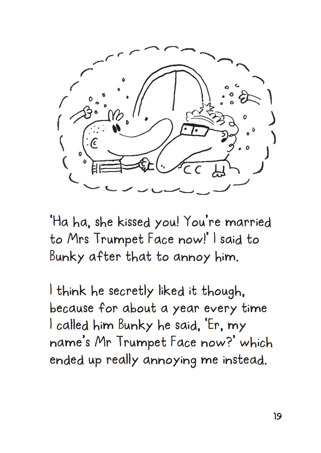 'Ha ha, she kissed you! You're married to Mrs Trumpet Face now!' I said to Bunky after that to annoy him.