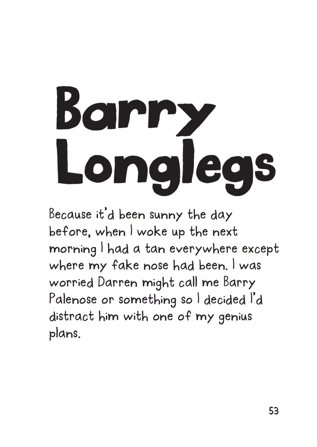 Because it'd been sunny the day before, when I woke up the next morning I had a tan everywhere except where my fake nose had been. I was worried Darren might call me Barry Palenose or something so I decided I'd distract him with one of my genius plans.